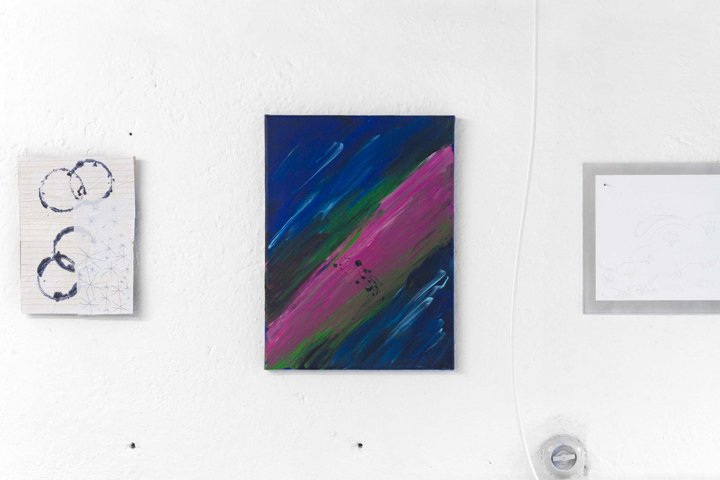 Paula Kreuzer, ausgerissene Seite, 2024, acrylic, pencil and adhesive tape on paper