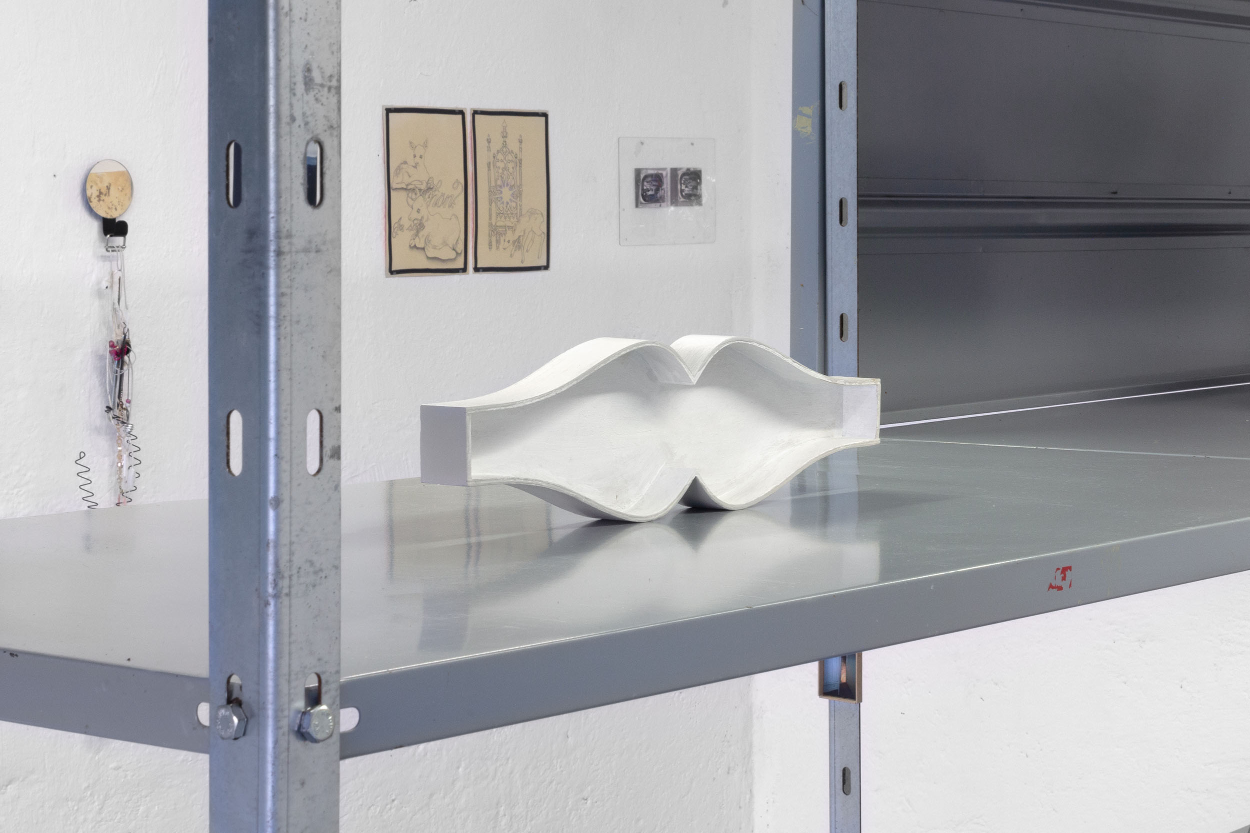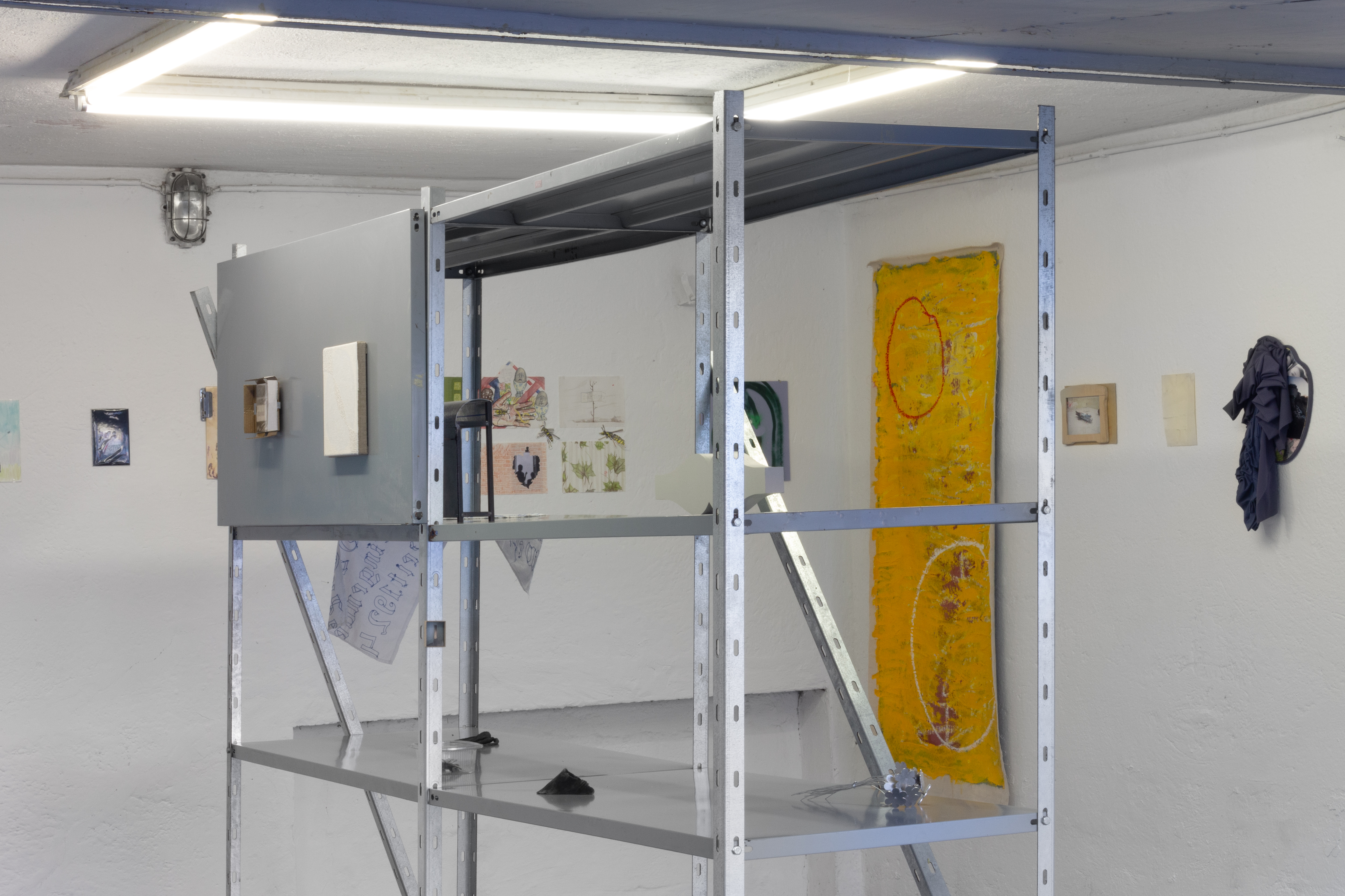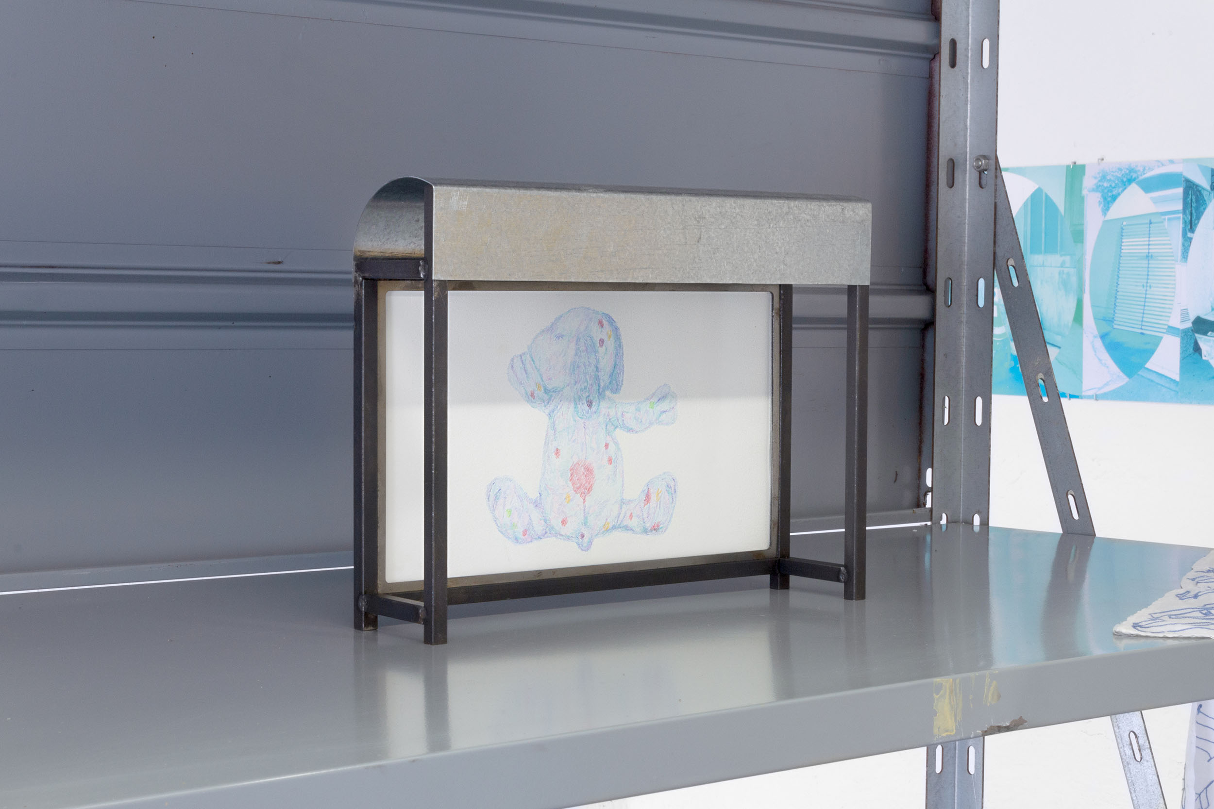 Teuta Jonuzi, This little Tobi stayed home stayed home, 2024, Steel, stainless steel, coloured pencil on paper