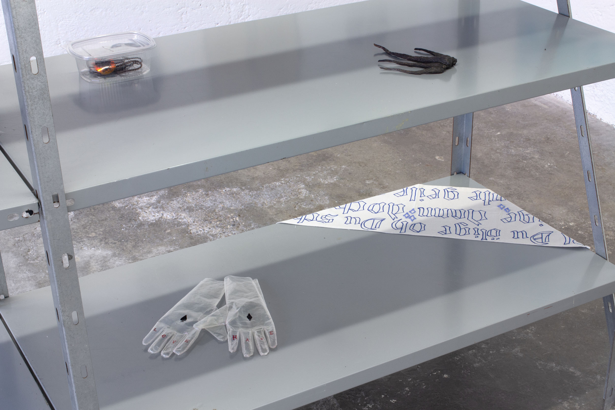 Lara Finkenstädt, As if all life were not one gold plated hell of a cheap charm bracelet to begin with, 2024, Printout on cardboard and so-called file root hanging from wick