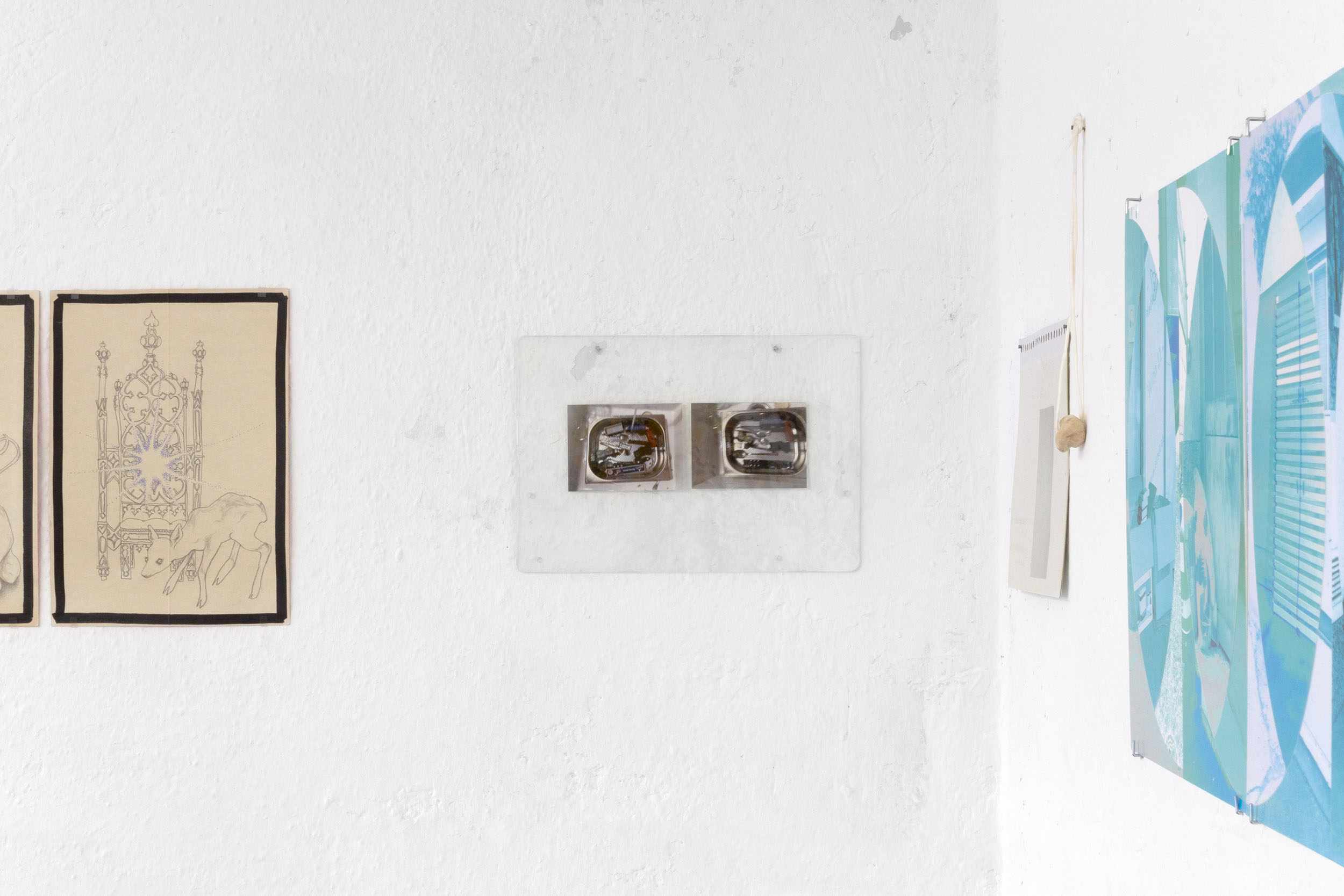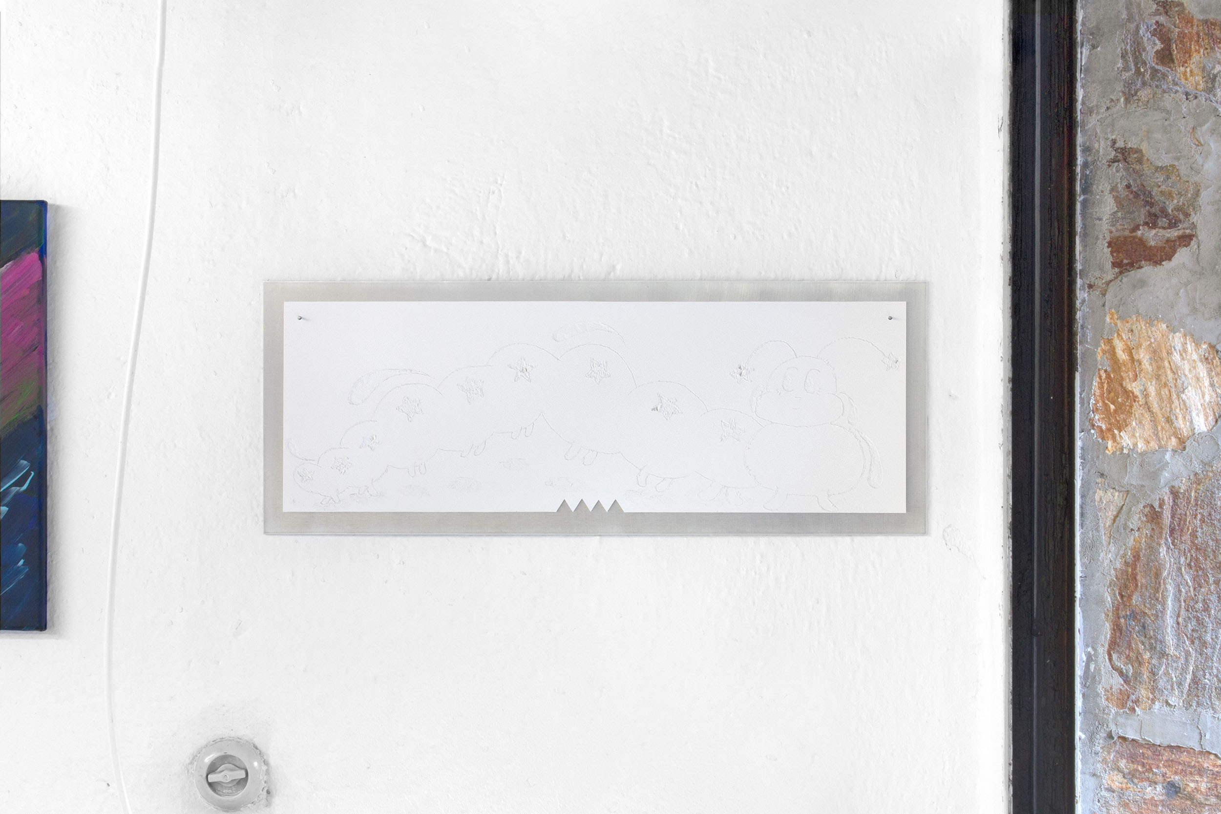 Teuta Jonuzi, This little Tobi stayed home stayed home, 2024, Steel, stainless steel, coloured pencil on paper