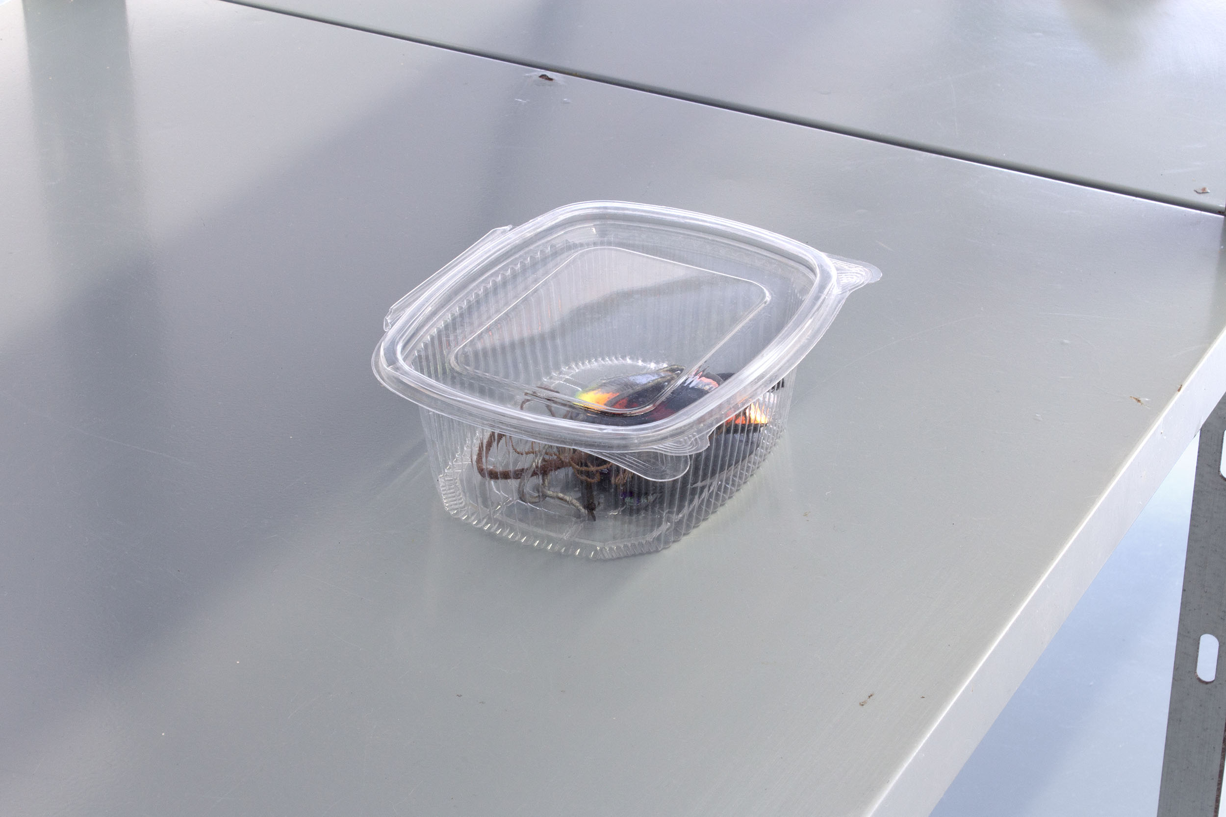 Flavio Palasciano, Untitled (sortiment), 2024, 2 found lenses, 1 discarded lens, 2 found scrap metallic wires, 2 found hairbands, 1 found hairclip, 1 found binding wire, one used food box