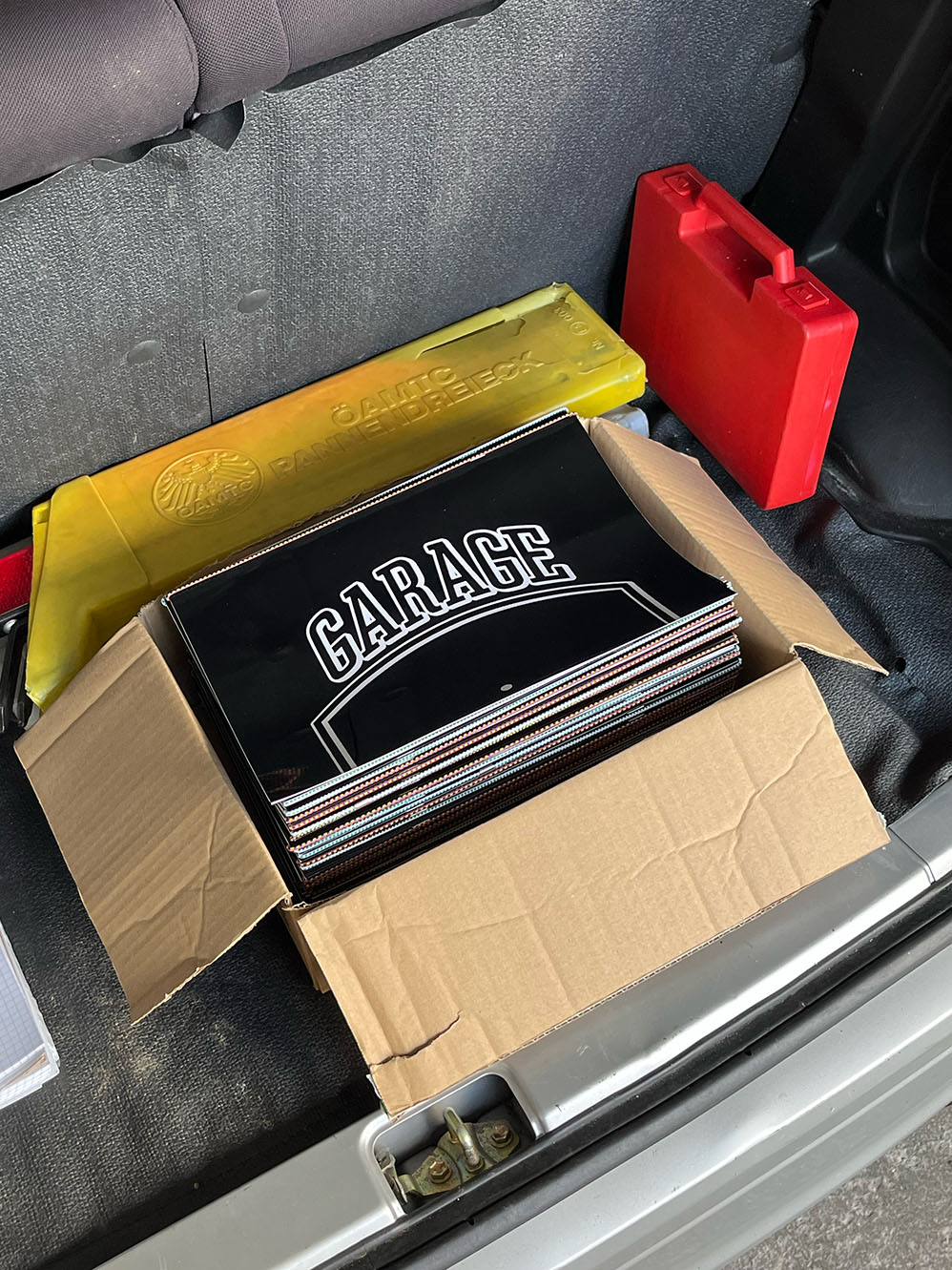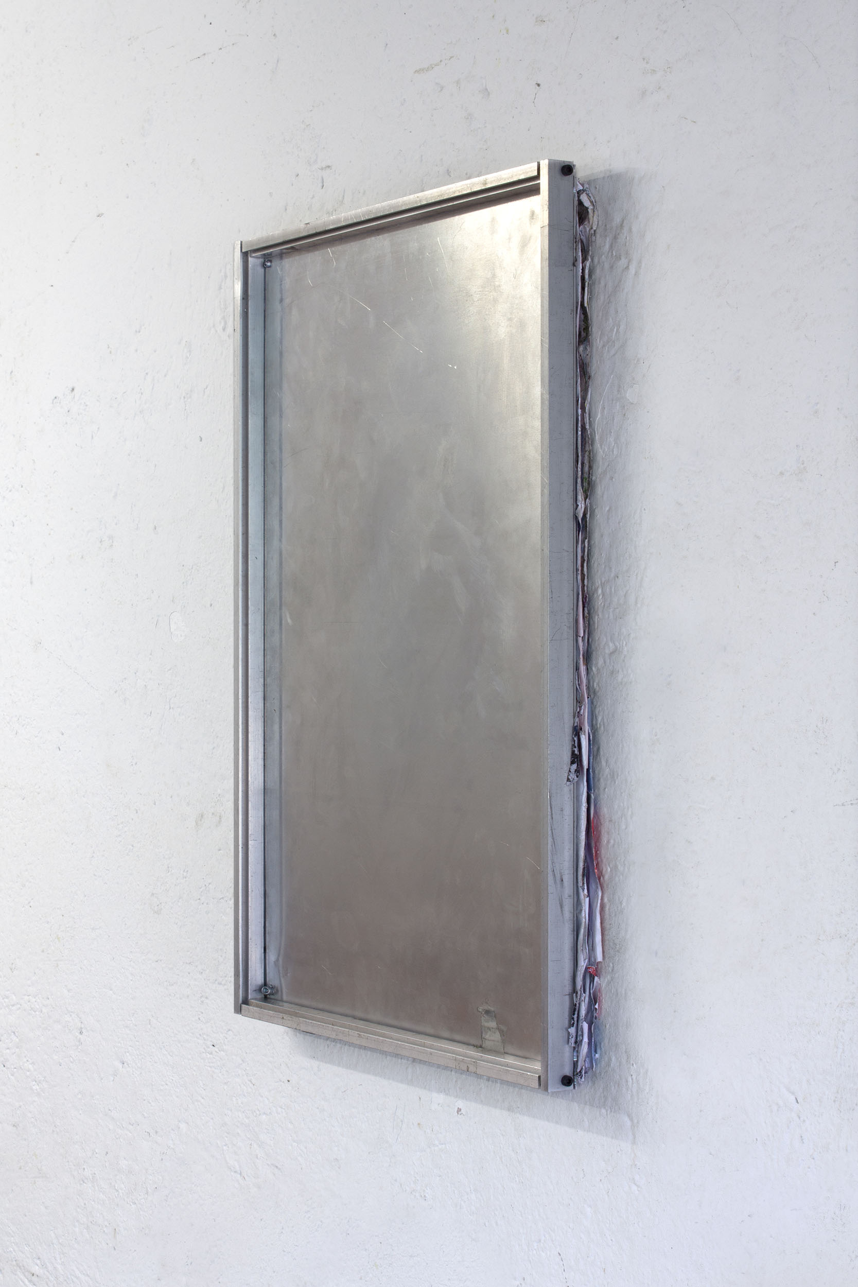 Announcement/Invitation, 2023, Aluminium, collected eventposter-scraps, tape, 29.7 x 42.0 cm